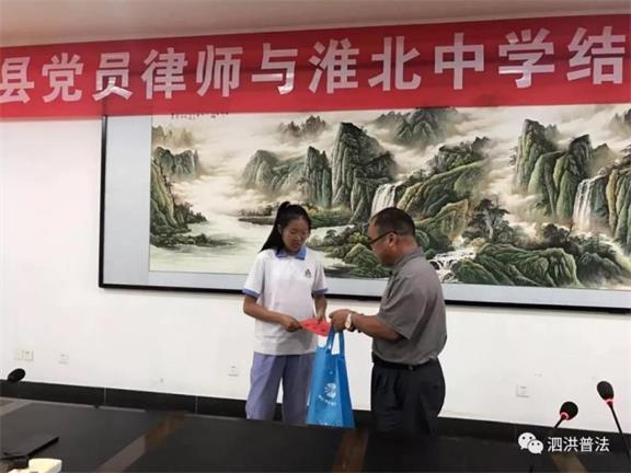 2019年11月,泗洪縣律師協(xié)會組織全縣20名黨員律師前往江蘇省淮北中學,給家庭困難的在校學生送去學習文具、資助金等。